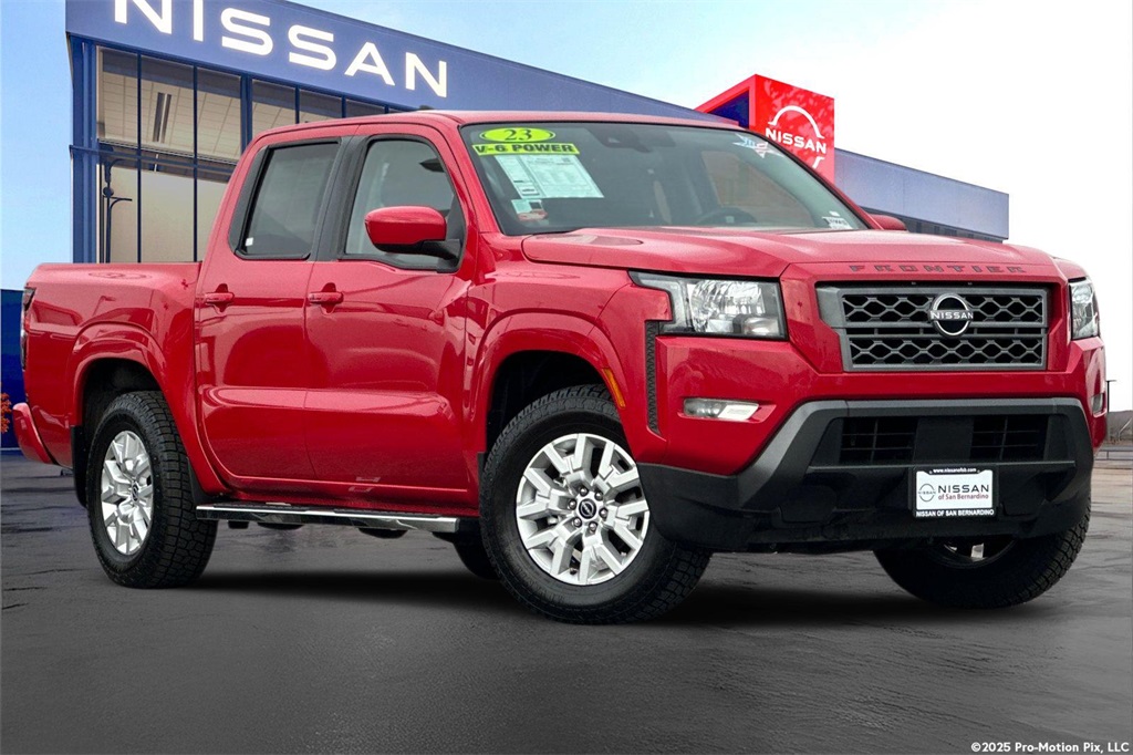 CARFAX One-Owner.Frontier SV, 4D Crew Cab, 3.8L DI DOHC 24V V6, 9-Speed Automatic, RWD, Red Alert, Charcoal Cloth.This 2023 Red Alert Nissan Frontier SV RWD is well equipped and includes these features and benefits: SV Convenience Package (120V Power Outlet in Bed, 120V Power Outlet in Rear Center Console, Bed Under-Rail Lighting, Front Halogen Fog Lights, Heated Front Seats, Heated Leather Steering Wheel, Heated Outside Mirrors, HVAC - Dual-Zone Front Auto A/C, I-Key w/Request Switches on O/S Handles, Illuminated Locking Glove Box, Leather Shift Lever, Overhead Console Storage (Sunglass Holder), Remote Engine Starter, Sliding Rear Window, Spray-In Bedliner, Tow/Haul Mode Switch, Trailer Hitch w/Wiring Harness, and Utili-Track System), Technology Package (Blind Spot Warning, High Beam Assist (HBA), Intelligent Cruise Control, Lane Departure Warning System, Rear Automatic Braking (RAB), Rear Cross Traffic Alert (RCTA), and Rear Sonar System), Tow Package: Hitch, Tow Harness, Tow Package: Hitch, Tow Harness - Delete/Credit, Frontier SV, 4D Crew Cab, 3.8L DI DOHC 24V V6, 9-Speed Automatic, RWD, Red Alert, Charcoal Cloth, 17" Alloy Wheels, 3.692 Axle Ratio, 4-Wheel Disc Brakes, 6 Speakers, ABS brakes, Air Conditioning, Alloy wheels, AM/FM radio: SiriusXM, Anti-whiplash front head restraints, Apple CarPlay/Android Auto, Brake assist, Bumpers: body-color, Carpeted Floor Mats, Delay-off headlights, Driver door bin, Driver vanity mirror, Dual front impact airbags, Dual front side impact airbags, Electronic Stability Control, Electronic Tailgate Lock, Front anti-roll bar, Front Bucket Seats, Front Center Armrest, Front reading lights, Front wheel independent suspension, Fully automatic headlights, Illuminated entry, Knee airbag, Low tire pressure warning, Occupant sensing airbag, Overhead airbag, Panic alarm, Passenger door bin, Passenger vanity mirror, Power door mirrors, Power driver seat, Power steering, Power windows, Premium Cloth Seat Trim, Radio data system, Radio: SXM/AM/FM/AUX/USB Audio System w/6 Speakers, Rear anti-roll bar, Rear seat center armrest, Rear step bumper, Remote keyless entry, Security system, Speed control, Speed-sensing steering, Splash Guards, Split folding rear seat, Steering wheel mounted audio controls, Tachometer, Tilt steering wheel, Traction control, Trip computer, Variably intermittent wipers, and Voltmeter.