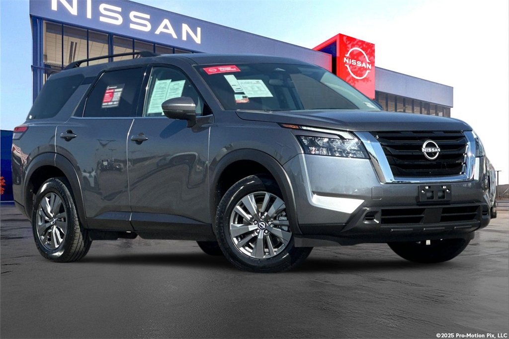 Certified. Odometer is 4043 miles below market average! CARFAX One-Owner. 21/27 City/Highway MPG4WD.This 2024 Gun Metallic Nissan Pathfinder SV 4WD is well equipped and includes these features and benefits: Nissan Certified Certified, 4WD, 3rd row seats: bench, 4-Wheel Disc Brakes, 6 Speakers, ABS brakes, Air Conditioning, Alloy wheels, AM/FM radio: SiriusXM, Auto High-beam Headlights, Automatic temperature control, Axle Ratio: 4.334, Brake assist, Bumpers: body-color, Cloth Seating Surfaces, Delay-off headlights, Driver door bin, Driver vanity mirror, Dual front impact airbags, Dual front side impact airbags, Electronic Stability Control, Emergency communication system, Four wheel independent suspension, Front anti-roll bar, Front Bucket Seats, Front Center Armrest, Front dual zone A/C, Front reading lights, Fully automatic headlights, Heated door mirrors, Heated Front Bucket Seats, Heated front seats, Illuminated entry, Knee airbag, Leather steering wheel, Low tire pressure warning, NissanConnect featuring Apple CarPlay and Android Auto, Occupant sensing airbag, Outside temperature display, Overhead airbag, Overhead console, Panic alarm, Passenger door bin, Passenger vanity mirror, Power door mirrors, Power driver seat, Power steering, Power windows, Radio data system, Radio: AM/FM Audio System w/NissanConnect, Rear air conditioning, Rear anti-roll bar, Rear Parking Sensors, Rear reading lights, Rear seat center armrest, Rear side impact airbag, Rear window defroster, Rear window wiper, Reclining 3rd row seat, Remote keyless entry, Security system, Speed control, Speed-sensing steering, Split folding rear seat, Spoiler, Steering wheel mounted audio controls, Tachometer, Telescoping steering wheel, Tilt steering wheel, Traction control, Trip computer, Turn signal indicator mirrors, Variably intermittent wipers, and Wheels: 18" x 8J Painted Alloy.Nissan Certified Details: * 7 Year/100,000 Mile Limited Warranty, 24/7 Hour Roadside Assistance, Carfax Vehicle History Report, Plus 1 Year Pre-Paid Maintenance Included. Gas Powered Nissan Models Only. * Warranty Deductible: $100 * 167 Point Inspection * Limited Warranty: 84 Month/100,000 Mile (whichever occurs first) * Transferable Warranty * Roadside Assistance * Vehicle History