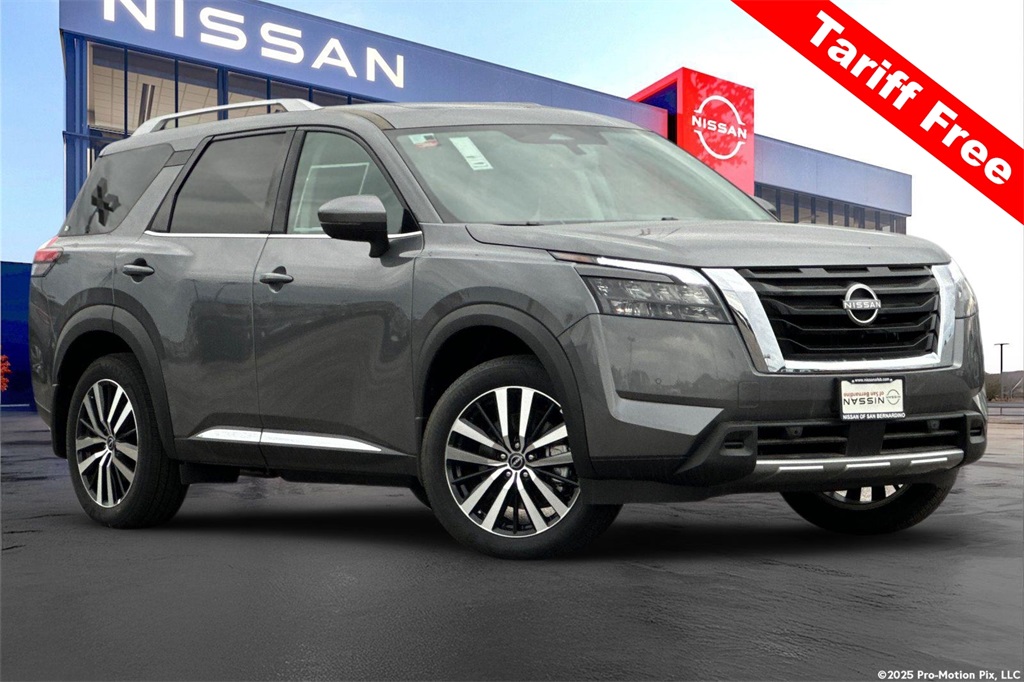 Gun Metallic 2025 Nissan Pathfinder Platinum FWD 9-Speed Automatic 3.5L V6 DOHC20/27 City/Highway MPG Price includes: $5000 - Nissan Customer Cash. Exp. 01/05/2026