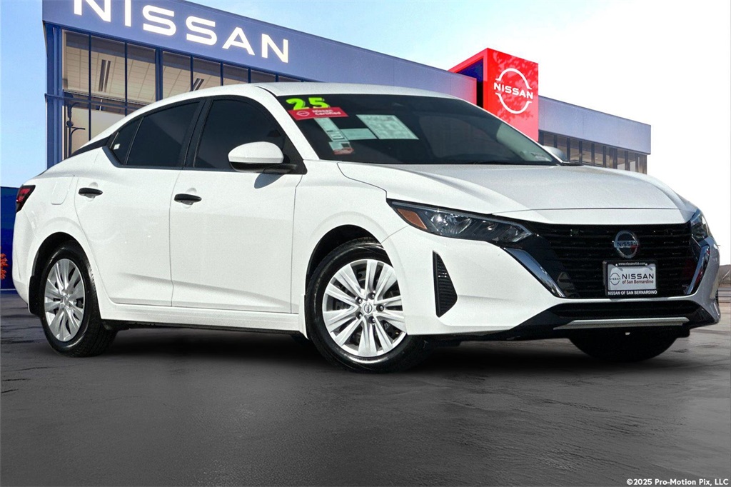 Certified. Odometer is 4793 miles below market average! CARFAX One-Owner. 30/40 City/Highway MPGCVT with Xtronic, Charcoal Cloth.This 2025 Fresh Powder Nissan Sentra S FWD is well equipped and includes these features and benefits: Nissan Certified Certified, CVT with Xtronic, Charcoal Cloth, 16" Steel Wheels w/Full Wheel Covers, 4 Speakers, ABS brakes, Air Conditioning, AM/FM radio, Auto High-beam Headlights, Blind Spot Warning, Body Colored Splash Guards (4-Piece), Brake assist, Bumpers: body-color, Carpeted Floor Mats w/Trunk Mat, Cloth Seat Trim, Delay-off headlights, Driver door bin, Driver vanity mirror, Dual front impact airbags, Dual front side impact airbags, Electronic Stability Control, Four wheel independent suspension, Front anti-roll bar, Front Bucket Seats, Front Center Armrest, Front reading lights, Fully automatic headlights, Illuminated entry, Knee airbag, Low tire pressure warning, NissanConnect featuring Apple CarPlay and Android Auto, Occupant sensing airbag, Outside temperature display, Overhead airbag, Overhead console, Panic alarm, Passenger door bin, Passenger vanity mirror, Power door mirrors, Power steering, Power windows, Radio data system, Radio: AM/FM w/RDS/MP3/Aux-In, Rear anti-roll bar, Rear Parking Sensors, Rear side impact airbag, Rear window defroster, Remote keyless entry, Speed control, Speed-sensing steering, Split folding rear seat, Steering wheel mounted audio controls, Tachometer, Telescoping steering wheel, Tilt steering wheel, Traction control, Trip computer, and Variably intermittent wipers.Nissan Certified Details: * Roadside Assistance * 167 Point Inspection * Transferable Warranty * Limited Warranty: 84 Month/100,000 Mile (whichever occurs first) * 7 Year/100,000 Mile Limited Warranty, 24/7 Hour Roadside Assistance, Carfax Vehicle History Report, Plus 1 Year Pre-Paid Maintenance Included. Gas Powered Nissan Models Only. * Vehicle History * Warranty Deductible: $100